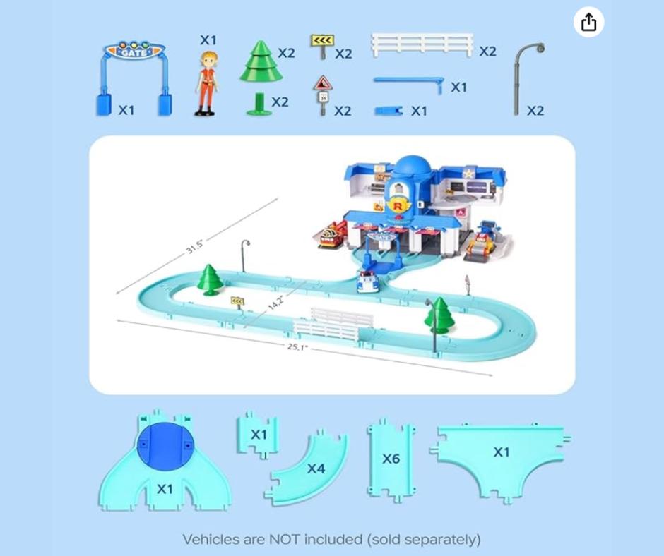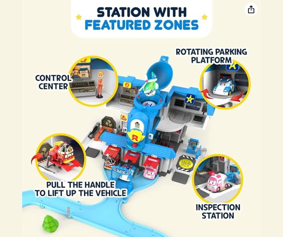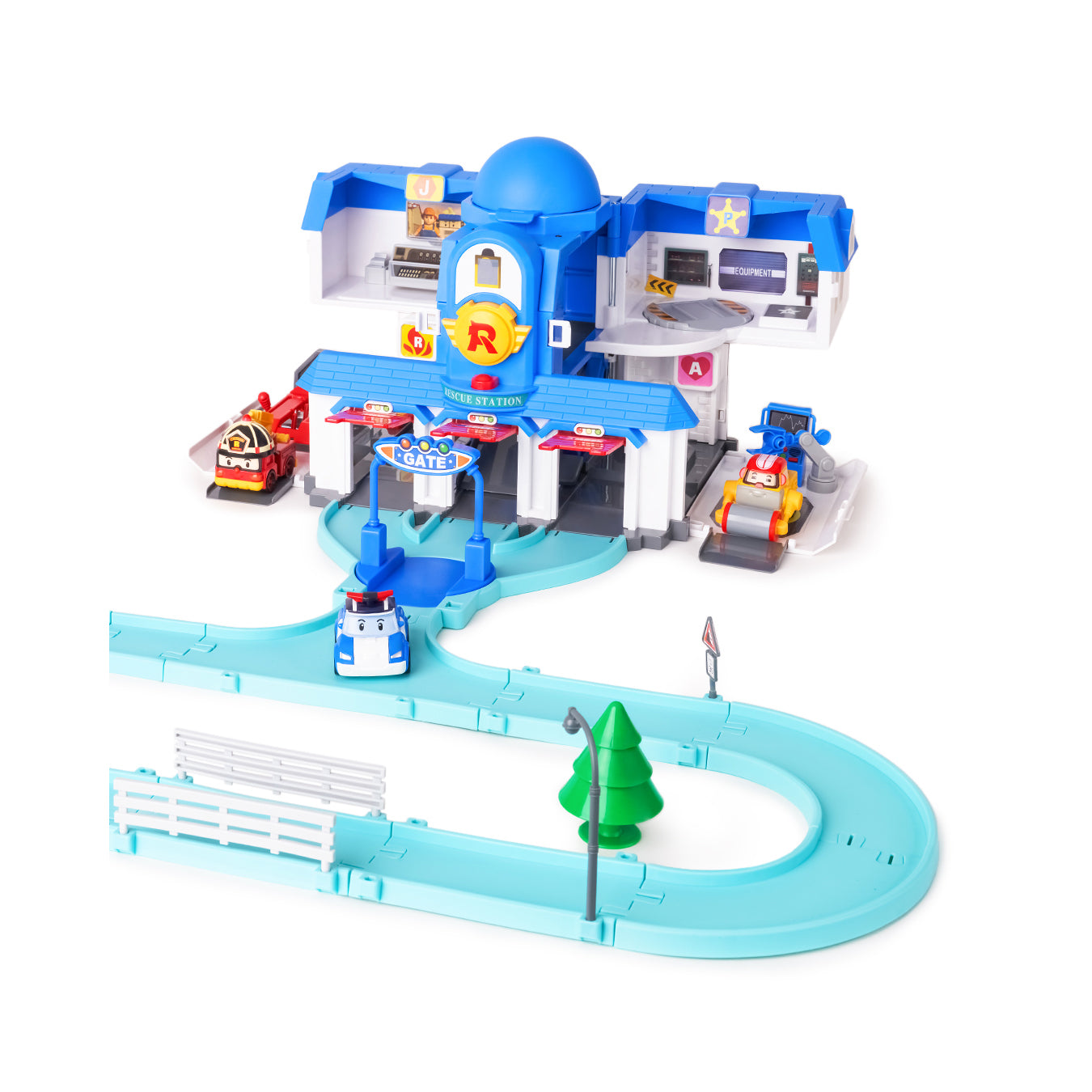 - BUILD OWN BROOMSTOWN: Recreate your favorite scenes from Robocar Poli with the Headquarter Station Playset! It comes with tracks (curves, straight tracks) and rotating launcher for extra fun. The main station and tracks can be connected to other Robocar Poli track playsets (Cargo/Car Wash/Recycle). | Best Fits Poli's diecast vehicles (mini cars)