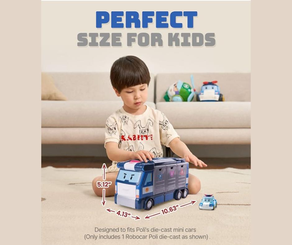 - MORE FUN+: Comes with a metal die-cast Poli Toy car. Best fit for Robocar Poli diecasts (Other diecast toy cars each sold separately) | Well-made of high quality plastic. | No batteries required | Perfect gift for robocar Poli fans age 3+