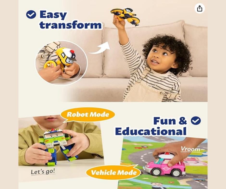 • 2-IN-1 Rescue Bot Car Toy: Kids ages 1 and up can enjoy twice the fun with 2 modes of play from our POLI Toys, easily converting these Mini Bot Racers from car to robot and back again.